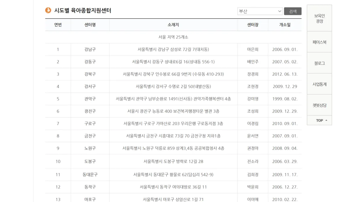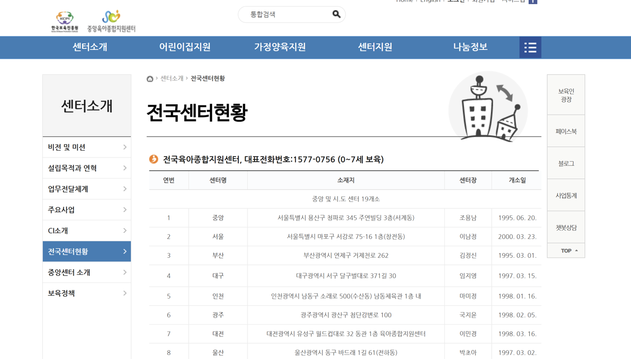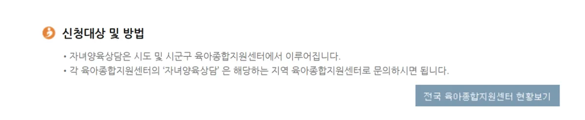 아니면 중앙육아종합지원센터 홈페이지를 방문하셔서 지역, 시도별 지원센터를 확인하세요
