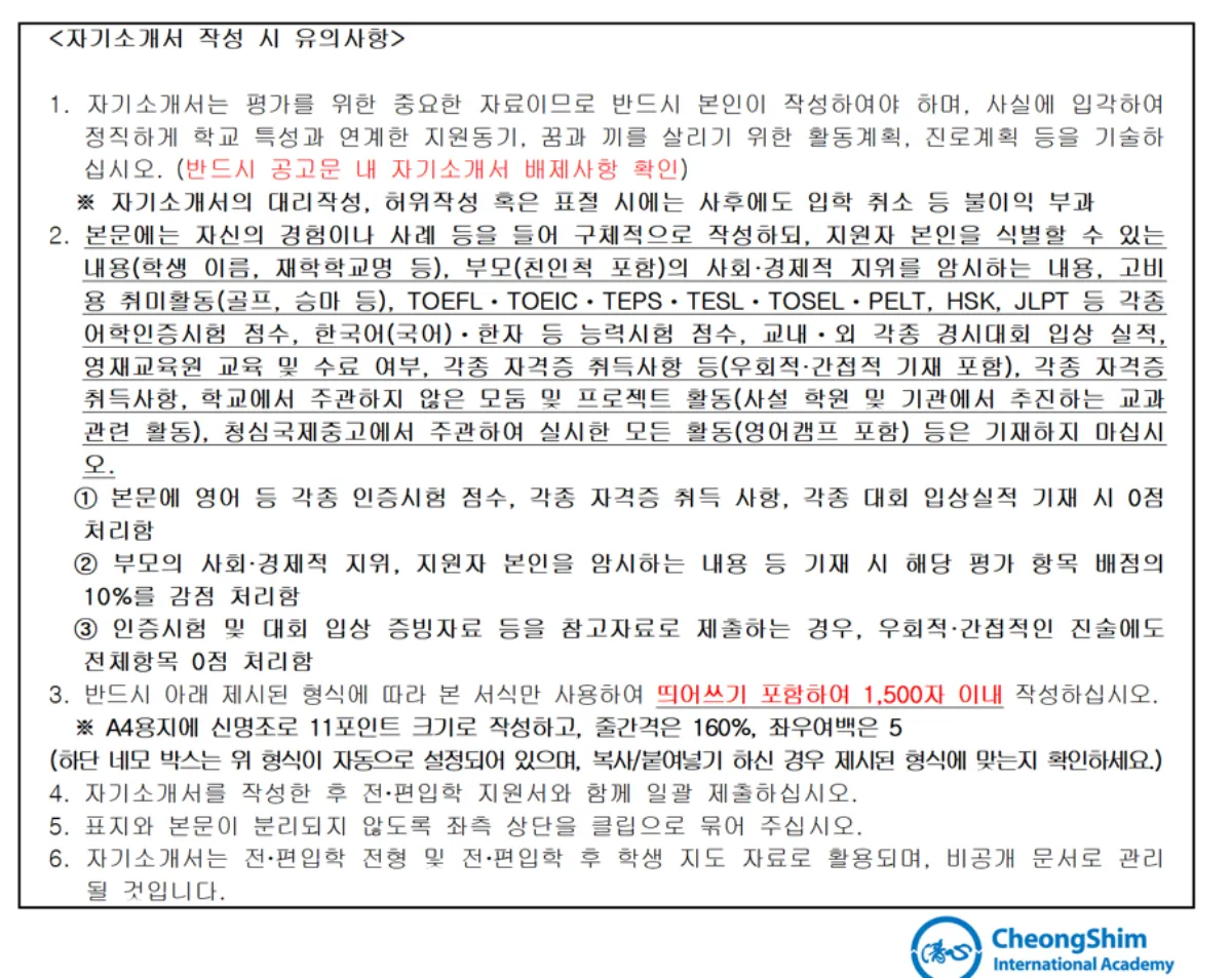 청심국제중 지원 동기 (학교 특성 - 구체적 프로그램 - 진정성)