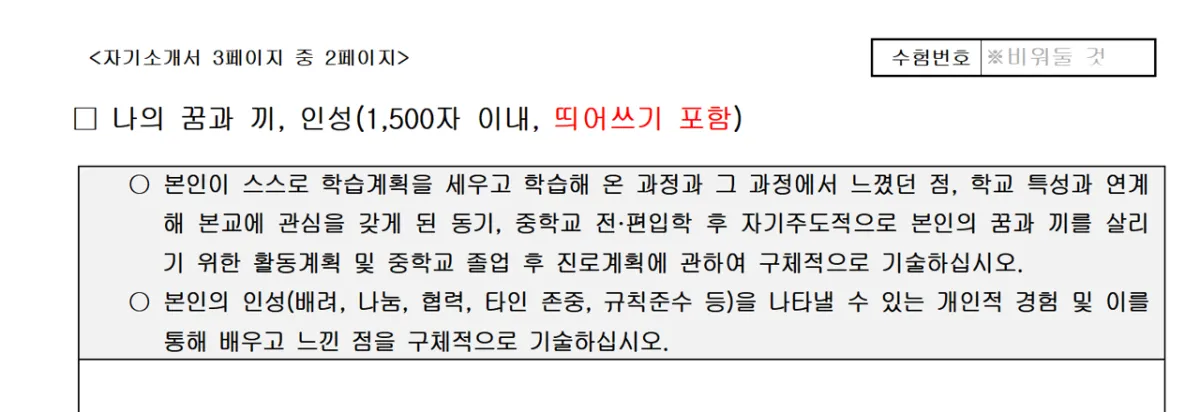 사교육(선행)내용과 본인의 출신학교, 인적사항 모두 주의해서 작성하시길 바랍니다.