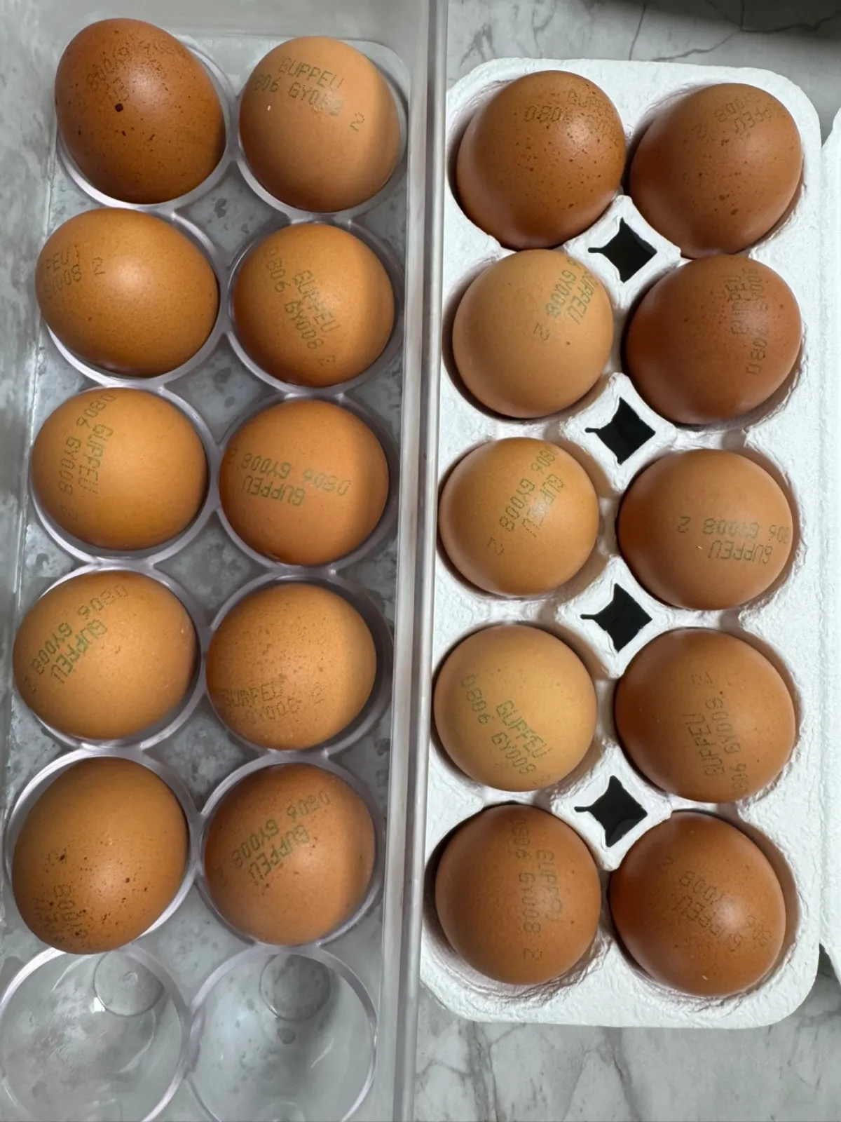 프라이팬에서 어떤 계란이 구쁘계란인지 알아보시겠죠?