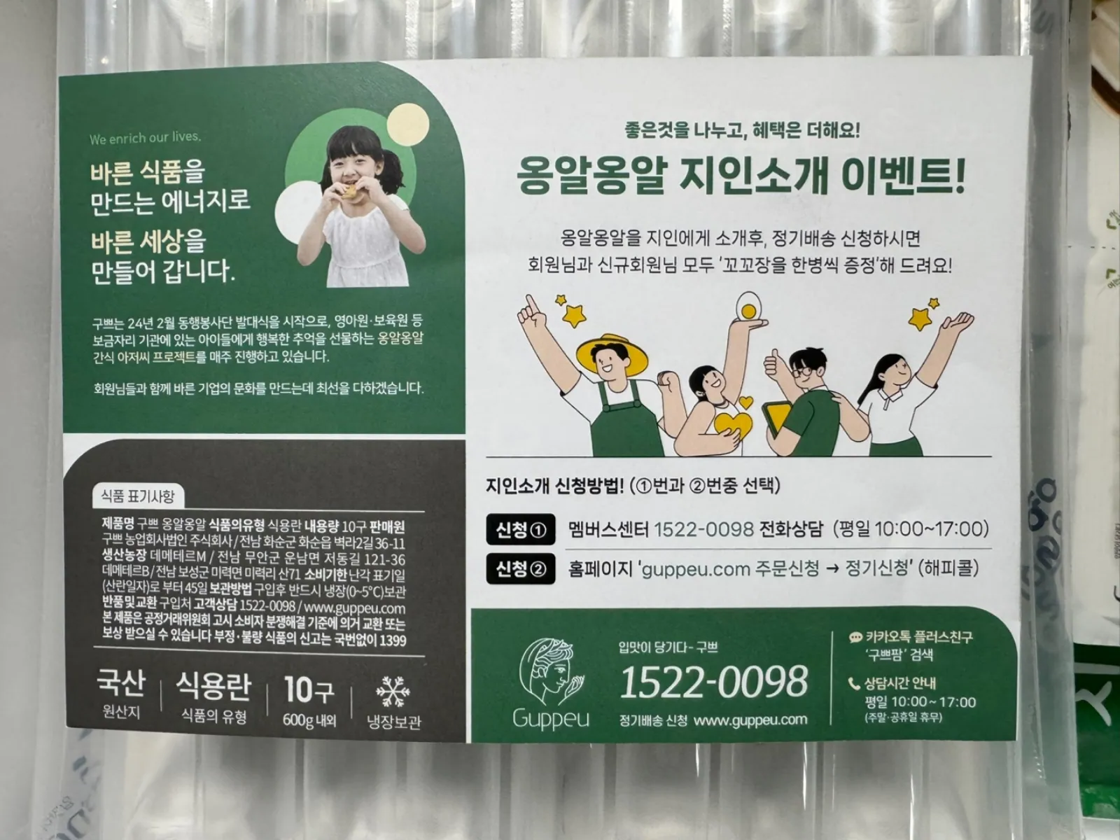 이번 택배에 들어있는 안내문을 보니