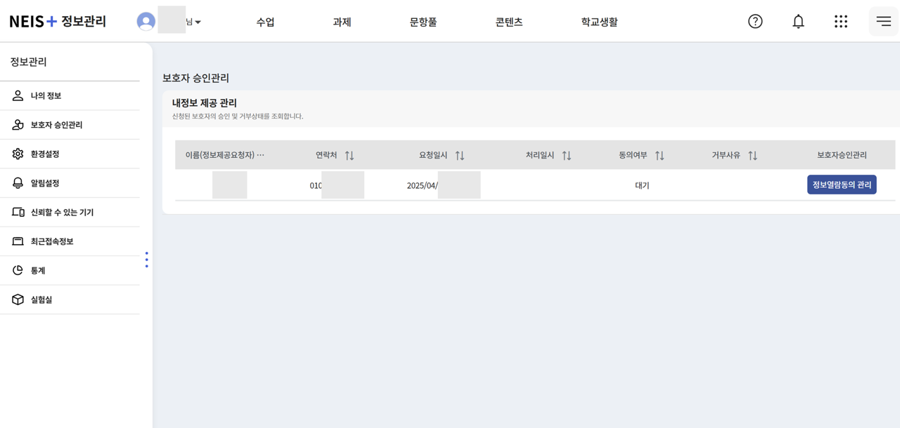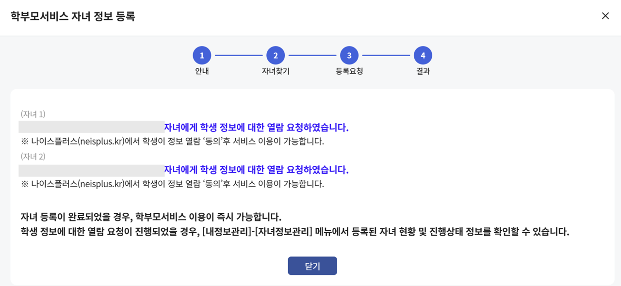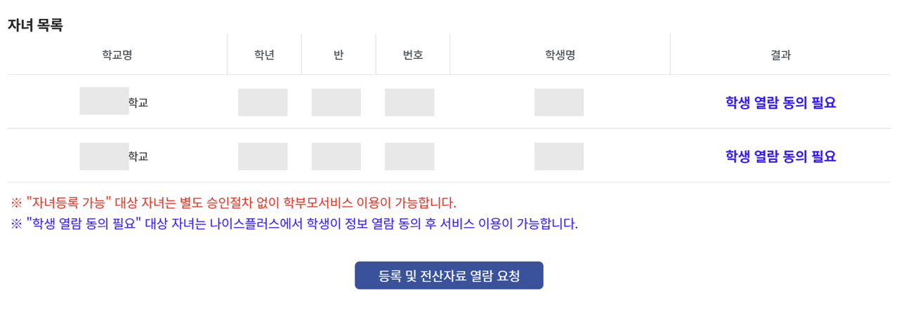 1. 부모님중 한명은 꼭 나이스 학부모로 가입해서 자녀등록요청 보냄