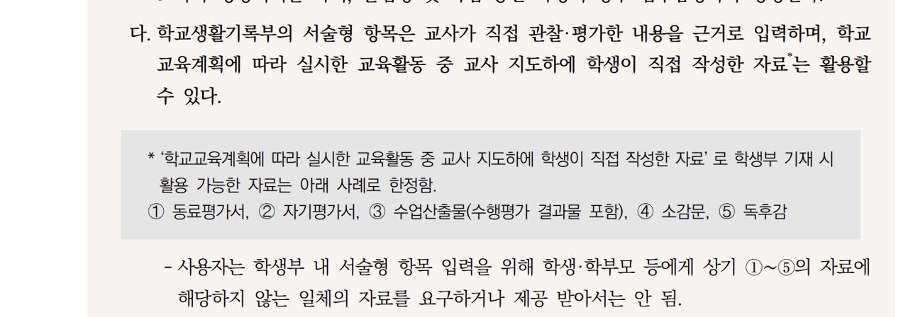 교육부 학교생활기록부 기재요령에 따르면, 이 두가지 평가는 단순한 과제나 설문이 아닌