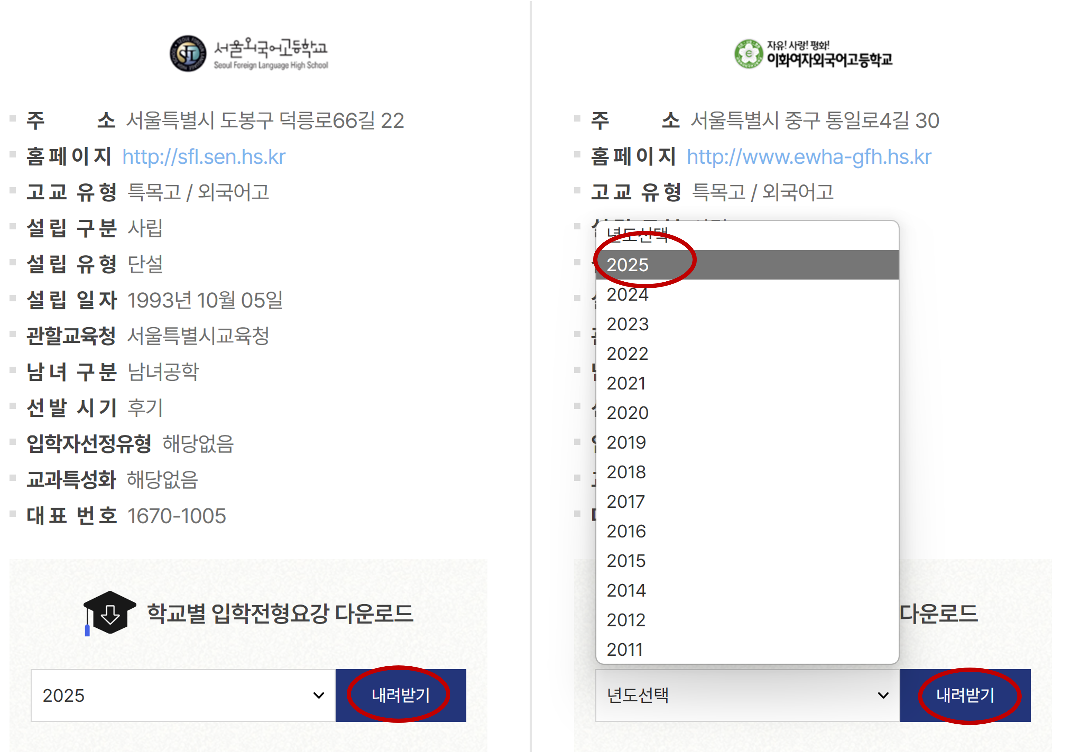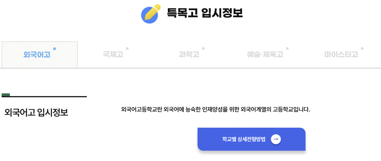 메뉴> 고교입시정보> 특목고 입시정보 선택>외국어고를 선택