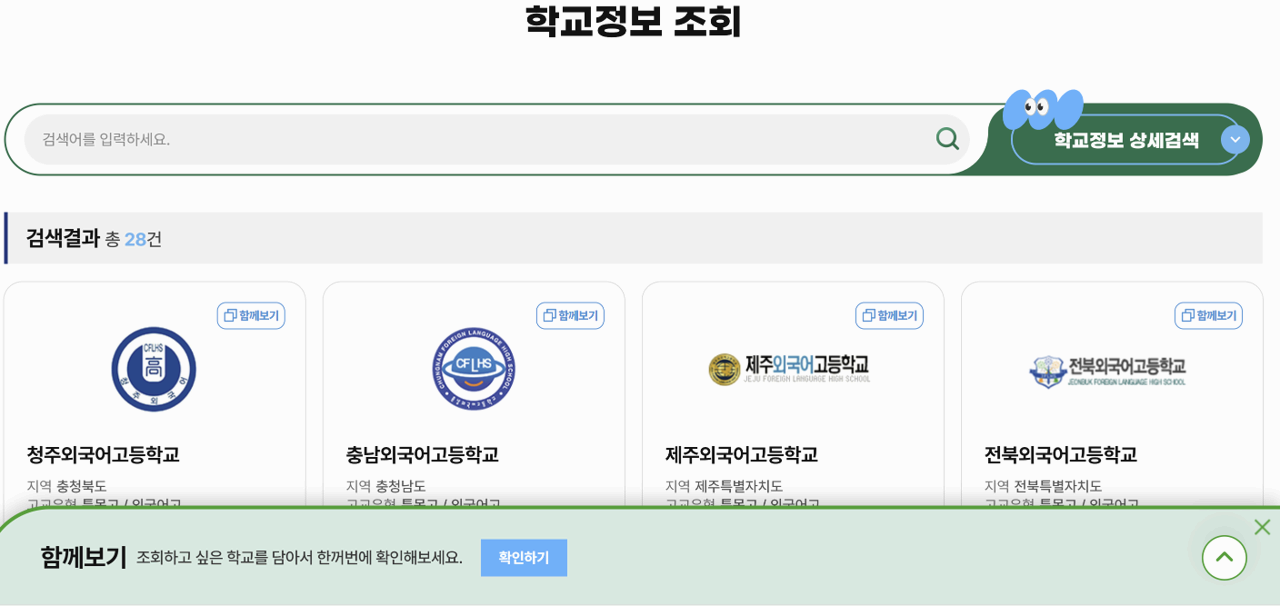 어떤 외국어고등학교가 있는지, 내 지역과 가까운 학교는 어디인지 등 의 정보를 찾아볼 수 있습니다.