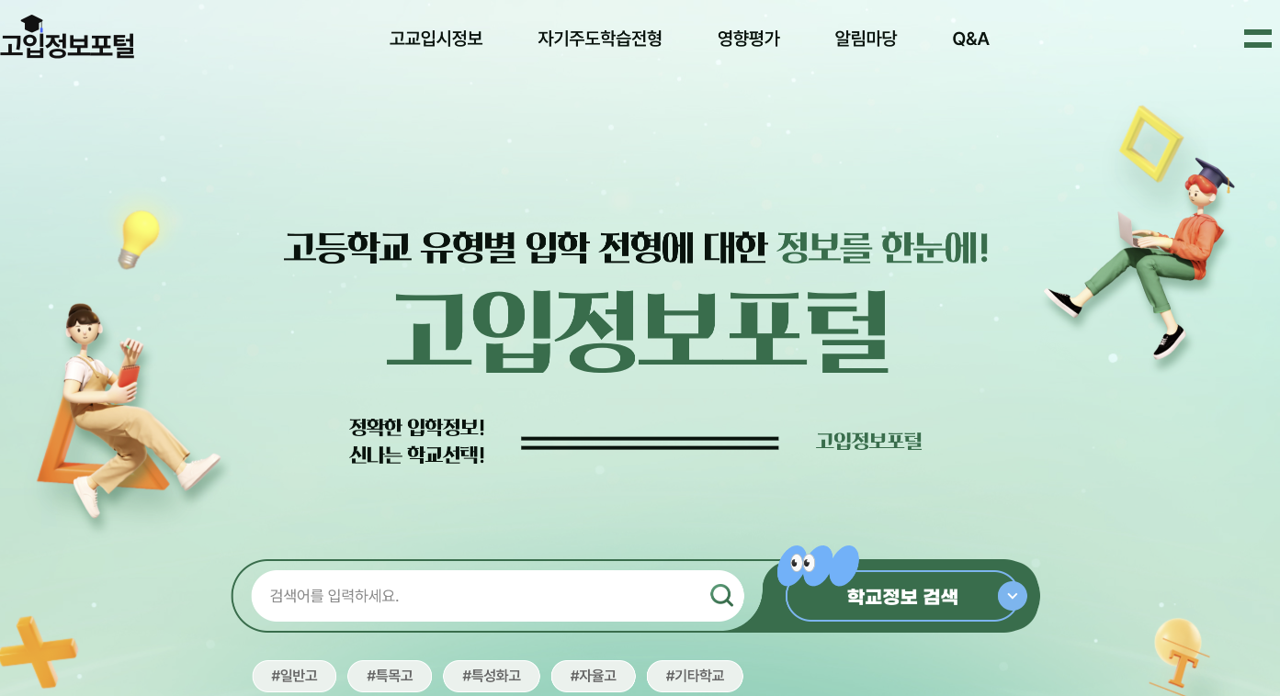 고입정보포털은 일반고, 특목고, 자사고, 특성화고 등 다양한 고등학교 유형별 입학 전형 정보를 제공하는 공식 플랫폼입니다.