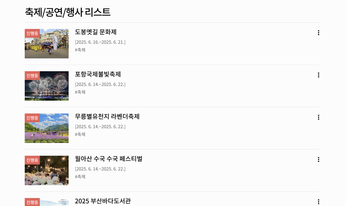 월별 지역 축제 일정과 상세 정보가 보기 쉽게 정리되어 있어,