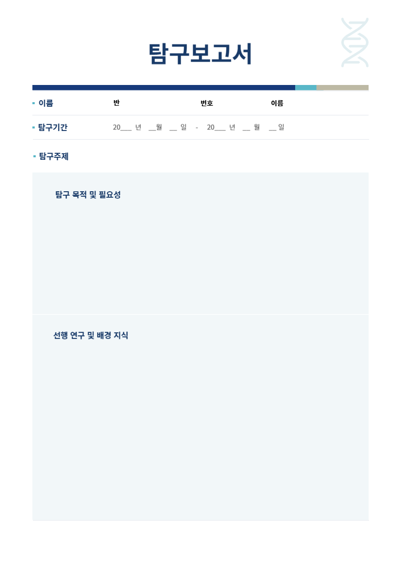 혹시 어렵게 느껴진다면, 아래에 제시한 탐구보고서 형식을 참고하셔도 좋습니다.
