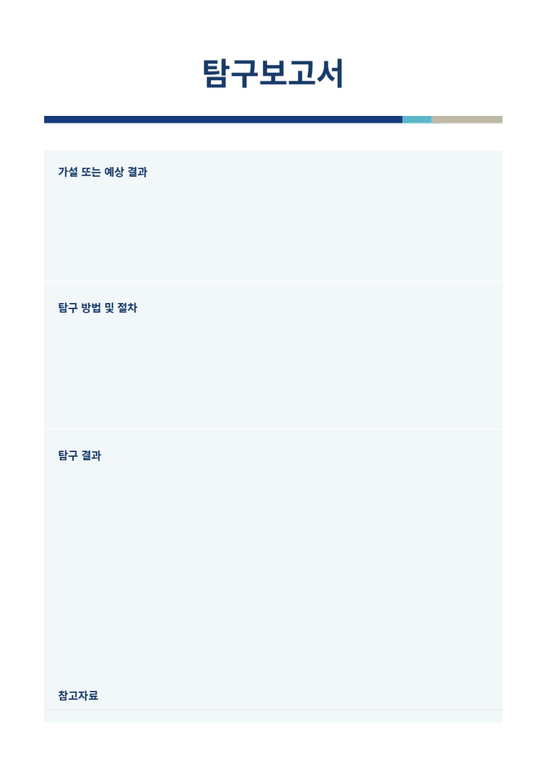 혹시 어렵게 느껴진다면, 아래에 제시한 탐구보고서 형식을 참고하셔도 좋습니다.