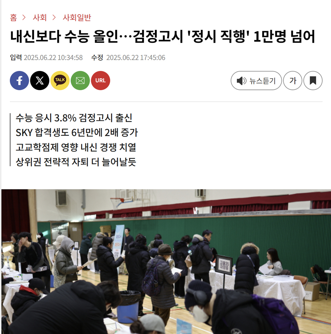 검정고시 지원자 수 증가와 정시 루트의 현실