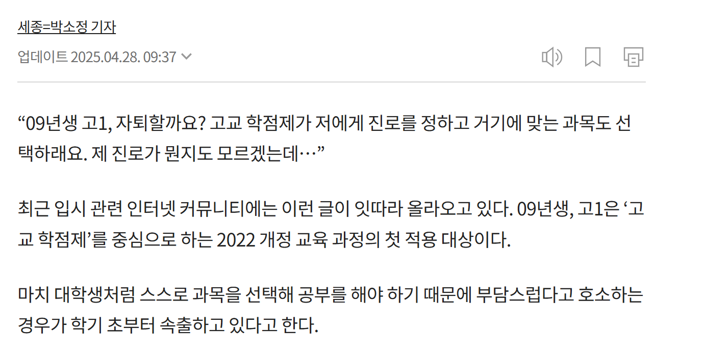 최근에는 그 시점이 고1로 앞당겨지고 있다는 점이 더 우려스럽습니다.